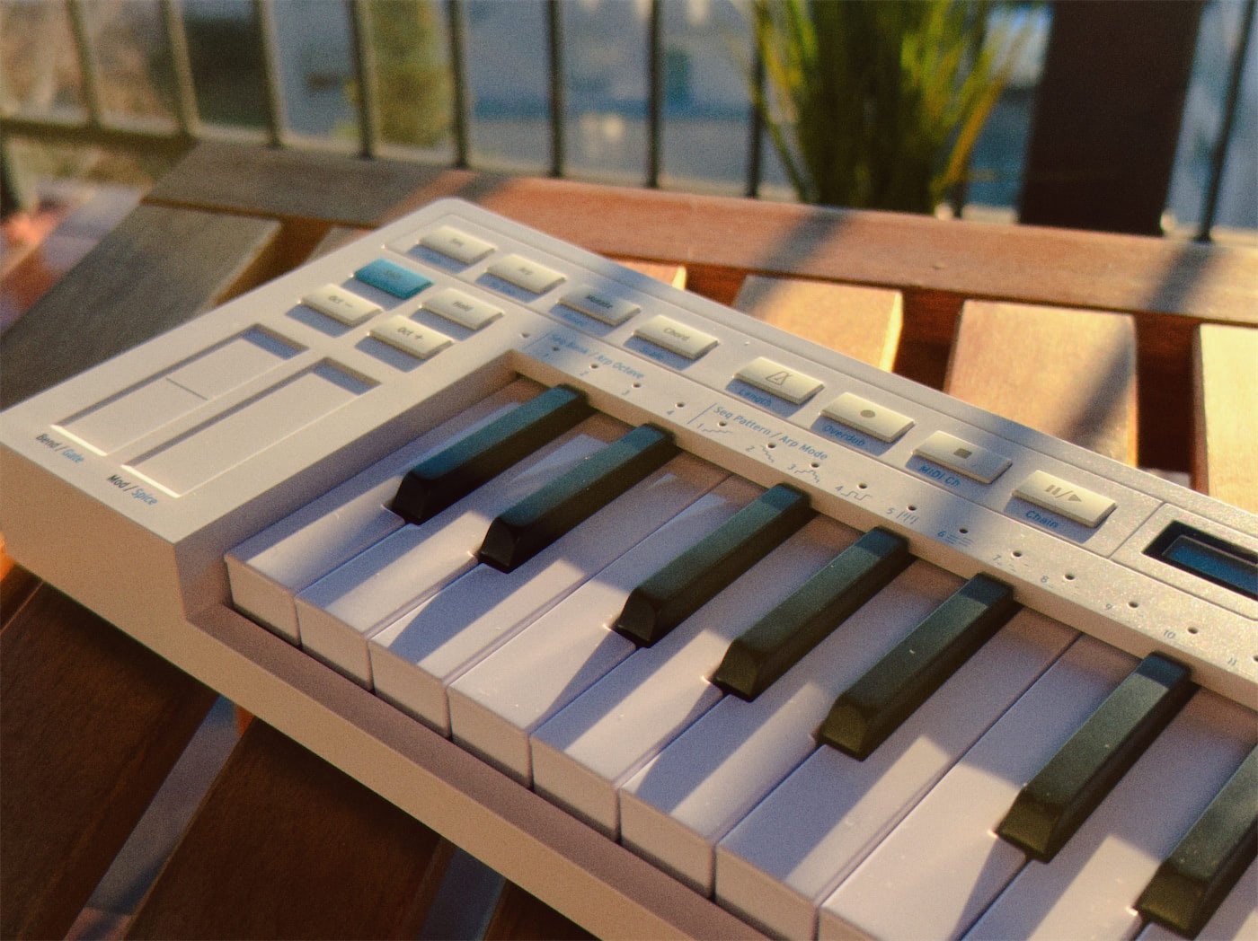 The small OLED screen works well for its size. It shows the current pattern, arpeggio mode, edit values, and parameter names clearly enough that you always know where you are.