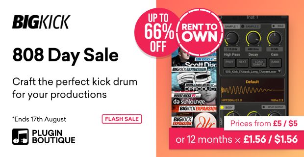 BigKick for Windows and Mac (VST/VST3, AU, AAX) is on sale for $19 USD until August 17th, 2025. The plugin is also available with Rent to Own for $1.56 USD/month.
