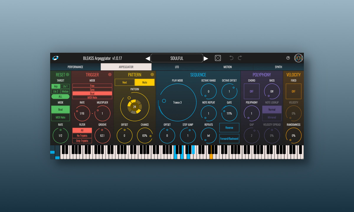 BLEASS Arpeggiator takes the inspirationally melodic power of a classic synth arpeggiator and supercharges it with modern features demanded by today’s musicians.