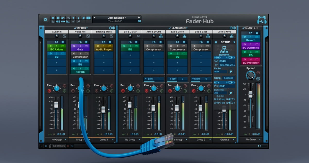 Blue Cat Audio has introduced an update for its network mixing, streaming and recording console software. Version 1.2 of Fader Hub is a major step forward for network audio collaboration, whether you are working with multiple machines on a local network or collaborating with remote musicians online.
