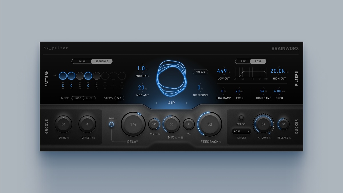 Native Instruments has announced the release of a new flagship creative delay plugin from Brainworx. Alongside an eight-step sequencer, ducking compressor, diffusion networks, and swing controls, bx_pulsar delivers 5 distinct delay types, spanning from pristine digital delays to colorful emulations of classic hardware and otherworldly reverse echoes.