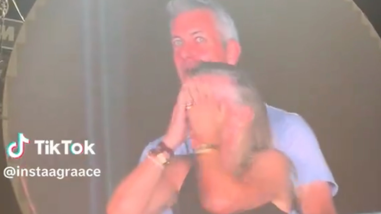 Footage that has since gone wildly viral shows the two, whose identities have not yet been confirmed (despite widespread but unverified speculation on social media), engaged in what many would describe as canoodling. As the two start to realize they are indeed on camera, they suddenly break away from each other, prompting Coldplay frontman Chris Martin to playfully chime in on the mic with some commentary.