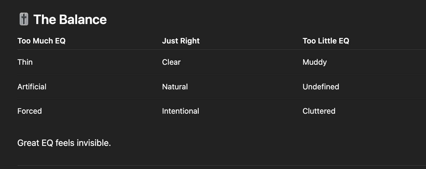 EQ is what happens when you chip away what doesn’t belong — until the sound reveals itself.