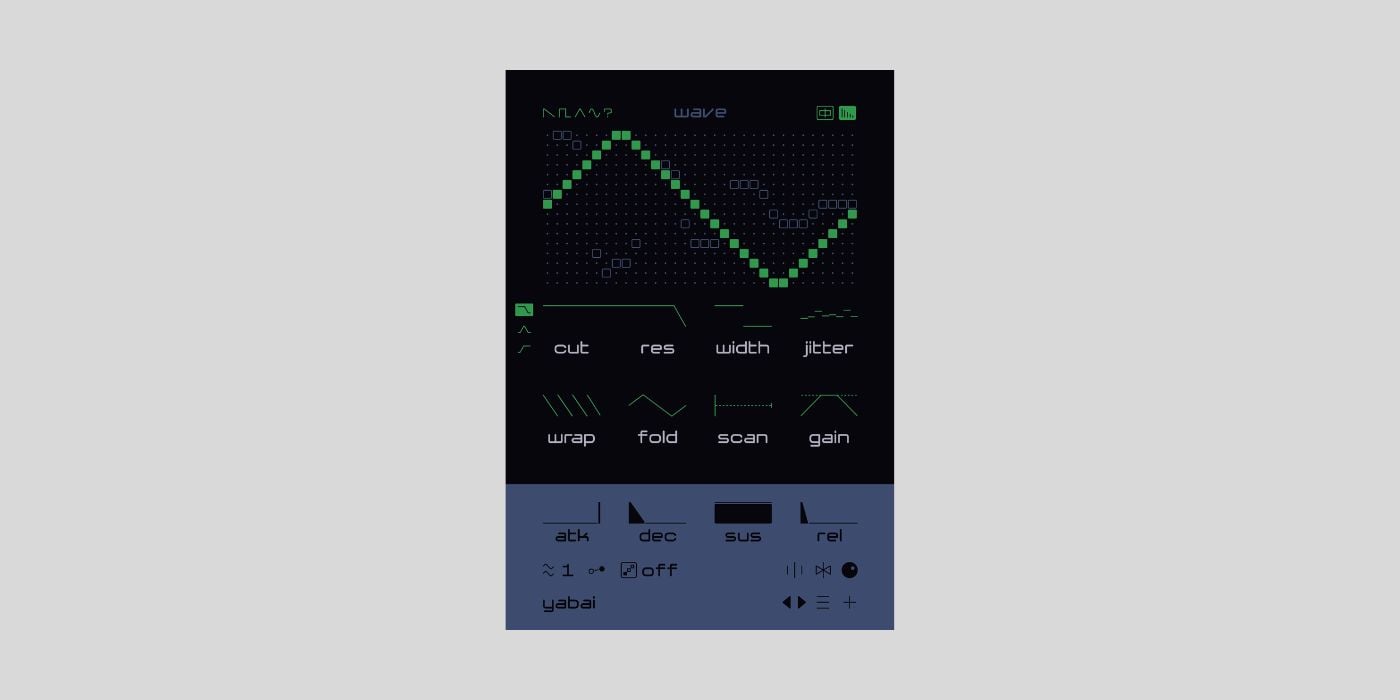 You can draw your own 4-bit waveform before moving on to the buffer transforms, which start with a resonant multi-mode filter (lowpass, bandpass, and highpass).
