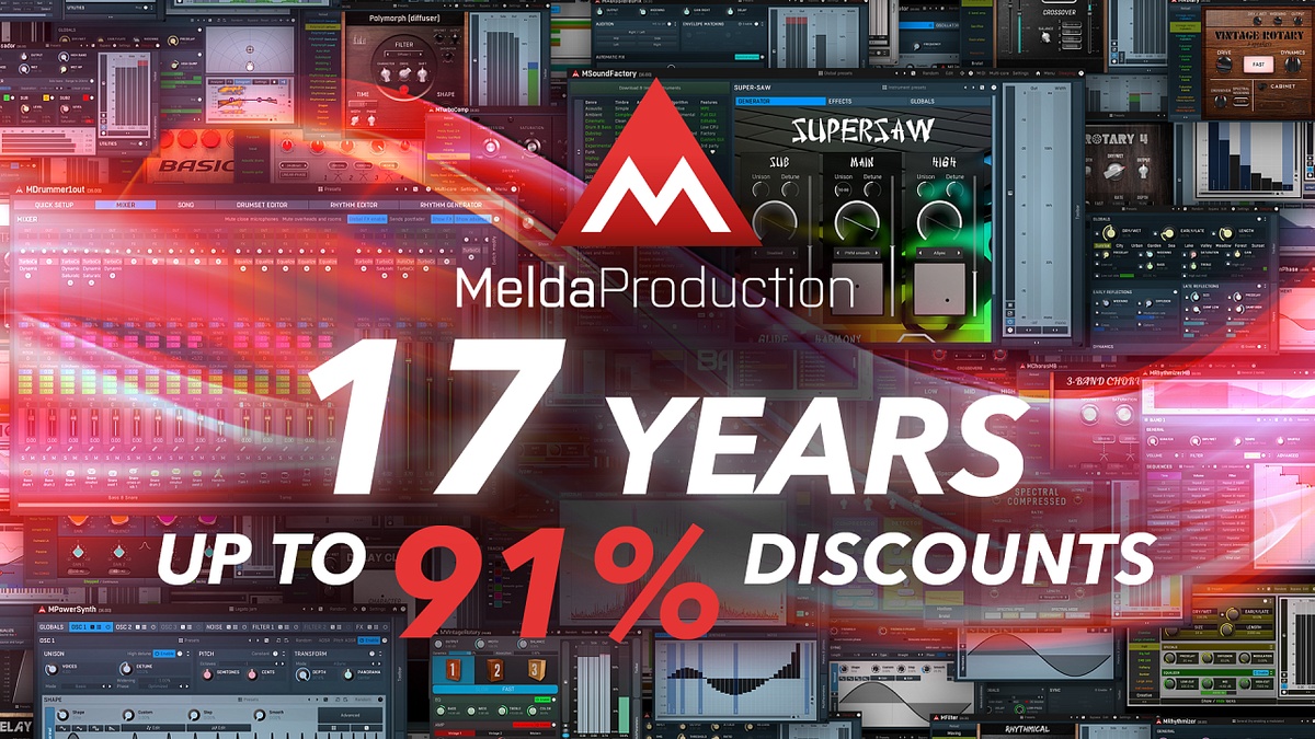 Meldaproduction has announced the launch of a limited time promotion in celebration of its 17-year anniversary. All plugins are on sale at a discounts of 55% or more.