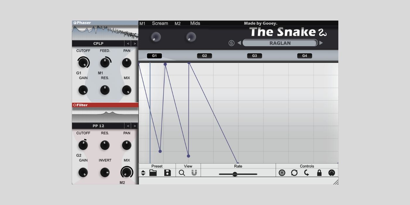 Where The Snake really shines is in its modulation routing. You can use “Gooey Graphs” to modulate almost any parameter and link multiple controls together for rhythmic, evolving effects.