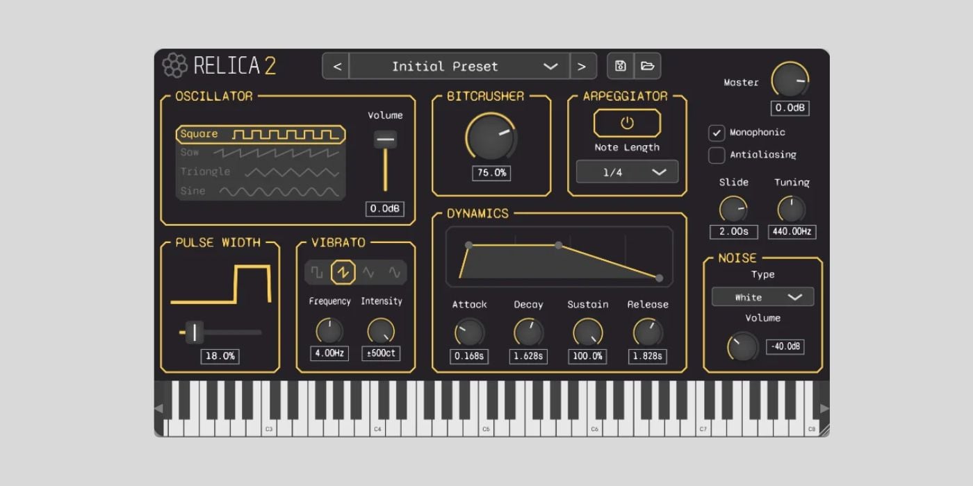 Hivetune has released Relica 2, a free subtractive synthesizer designed to recreate the sounds of the 8-bit era.