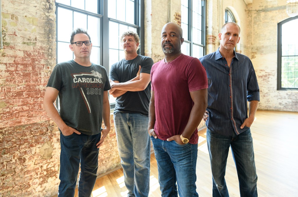 First, Hootie. The Darius Rucker-fronted band racked up six Hot 100 entries between 1994 and 1996, paced by the No. 6-peaking “Only Wanna Be With You.” One of those songs, the group’s breakthrough “Hold My Hand” (No. 10, 1995), contributes to “Bottle Rockets,” as the band convened to provide new vocals and instrumentation on its sections, during which the original’s chorus is woven into that of “Bottle Rockets.”