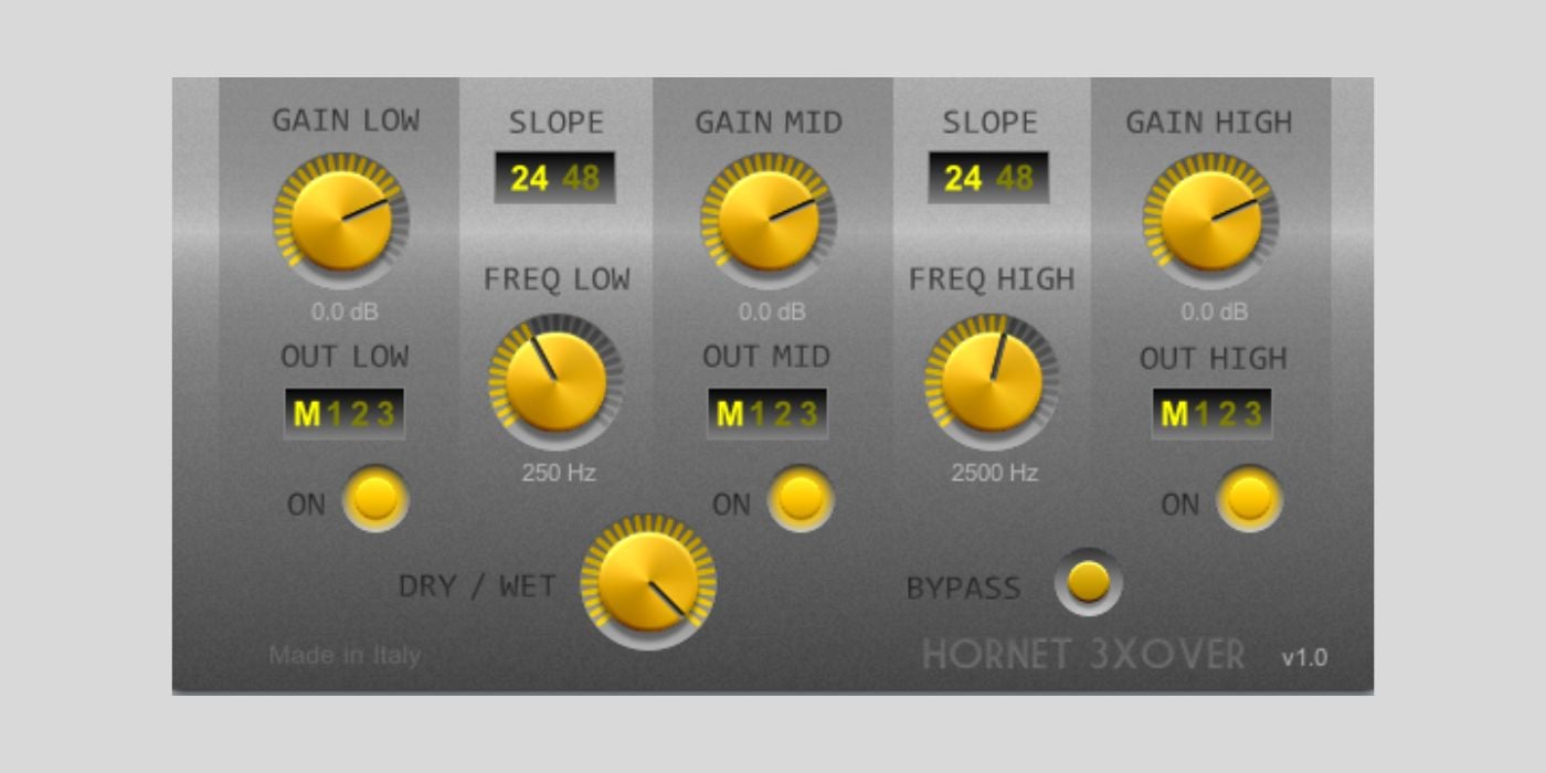 There’s an ON/OFF switch for every band, making it easy to completely remove lows, mids, or highs. That makes 3XOver pretty handy for quick DJ-style frequency cuts, but it also opens up more experimental sound design options.