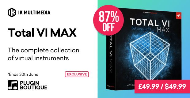 Offered at an 87% discount, the Total VI MAX bundle is designed to inspire your creativity for making music, delivering everything from bass and drums, to keyboards and orchestral sounds.