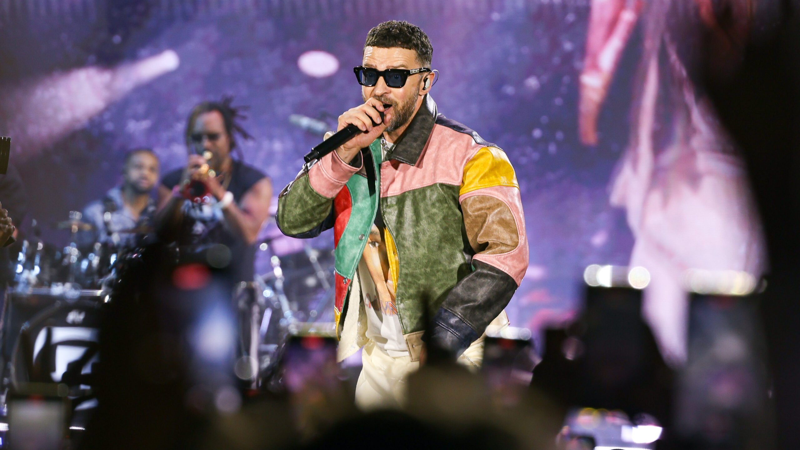 Timberlake was met with heavy rain during the show, and hit the stage about 40 minutes late. In a video shared on TikTok, Timberlake can be seen letting the crowd carry most of the performance, often raising up his microphone and encouraging fans to sing.