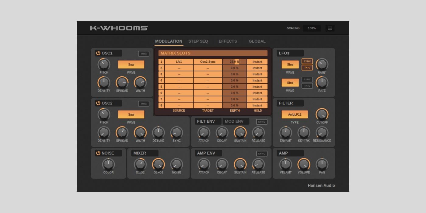 The modulation matrix is really well done and easy to use. It’s the part of K-Whooms I enjoyed the most.