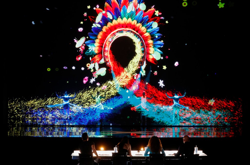 The troupe is called Light Wire, and their show has to be seen to be believed. The movements of four dancers onstage cascade from LED lights on their costumes up to larger-than life light illustrations on the screens, also including massive animations, like a stage filled with water or the dancers shifting into the head of a snake. The whole thing is soundtracked by powerful music that drives home the biggest moments.