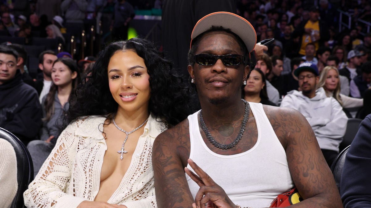Mariah the Scientist and Young Thug attend a basketball game between the Los Angeles Lakers and the Los Angeles Clippers at Crypto.com Arena