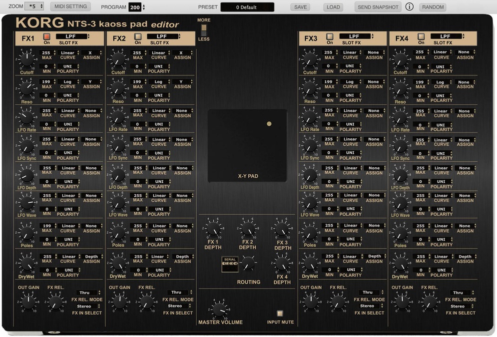 The advantage of my editor is that you can quickly adjust the effect settings in the NTS-3 kross pad and have an overview of all the settings. With the random function of the editor you can create new and surprising effect combinations.
