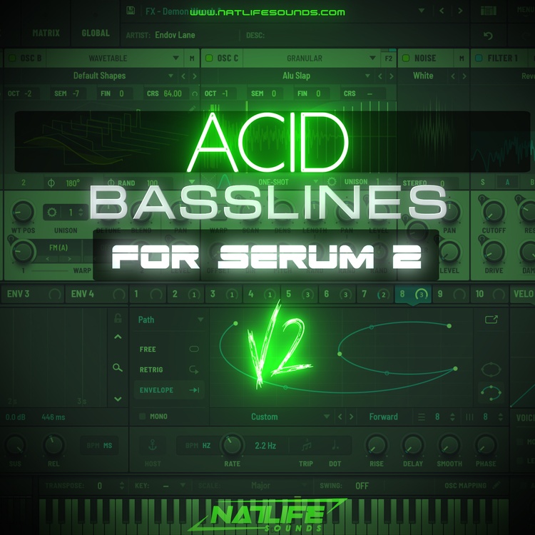 NatLife Sounds has introduced a new sound pack for the Serum 2 software synthesizer by Xfer Records. ACID V2 contains 50 acid bass presets with a wide variety of acid patterns and sound characters.