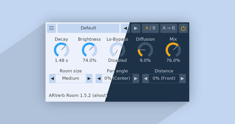 Besides giving life to a single instrument, ARVerb Room may be used to glue multiple tracks by making them sound like they’re in the same space, while maintaining good track separation. The space-saving minimal user interface only has a handful of musical controls, making the algorithm easy to set up.