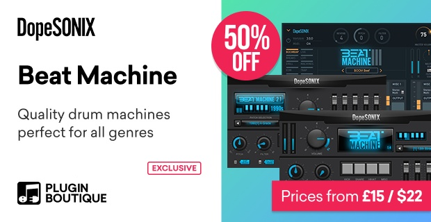 Plugin Boutique has launched an exclusive 50% discount on the Beat Machine series of virtual instrument by DopeSONIX.