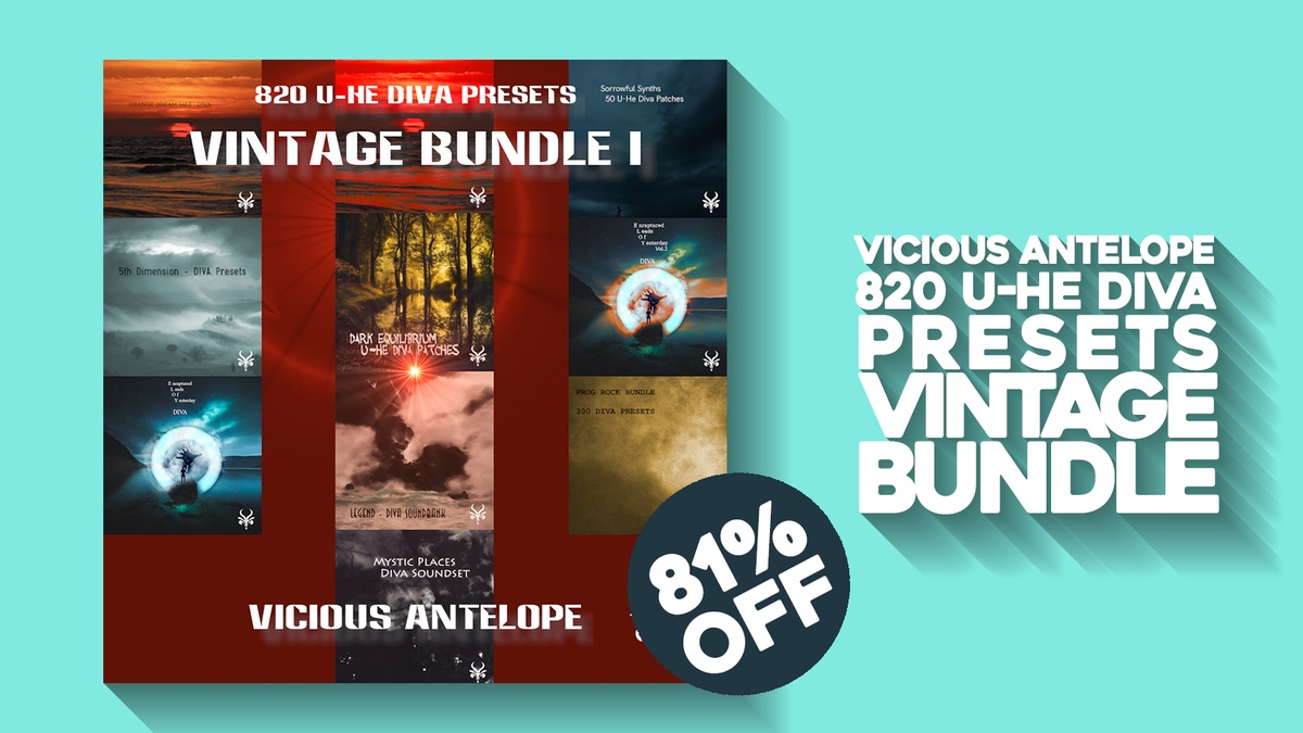 VST Alarm has announced an exclusive promotion on Vicious Antelope’s Vintage Bundle I for u-he Diva, offering over 80% off on the collection of 820 presets with a vintage sonic character.