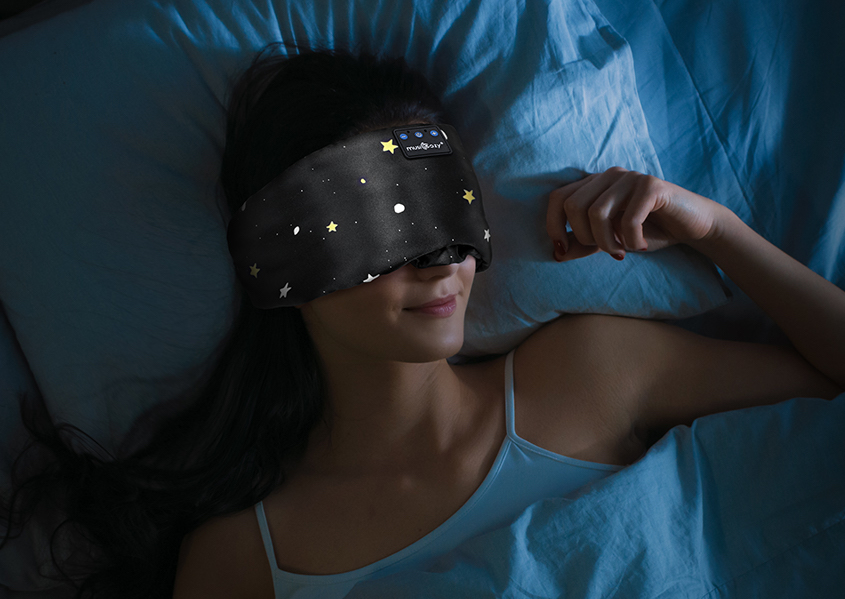 This Bluetooth sleep headband is made from a super soft and gentle silk material, so it’s light and comfortable on your eyes and head. While the material will provide a dark cover for your eyes to block out the light, it remains breathable, so you’re not sweating or suffocating under there either. A velcro strap at the back lets you adjust the sleep mask to your liking.