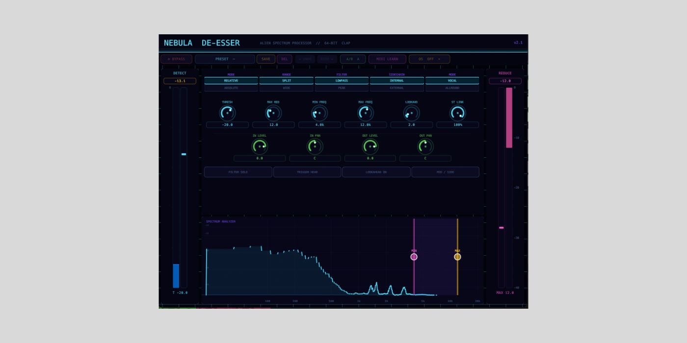 Therefore, you should be pleased to hear that Nebula De-Esser addressed both of those issues.