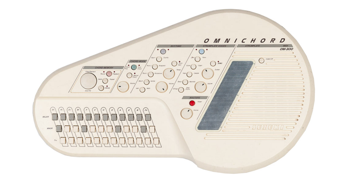 Subsequent models included the OM-100, OM-200M and the OM-300, with each generation adding new sounds and features — even MIDI compatibility. With sales dropping by the 2000s, Suzuki rebranded the instrument as the QChord, which sported updated versions of the original Omnichord’s features, adding things like PCM sampled sounds and more rhythms. The Qchord additionally featured both MIDI input and MIDI output ports.
