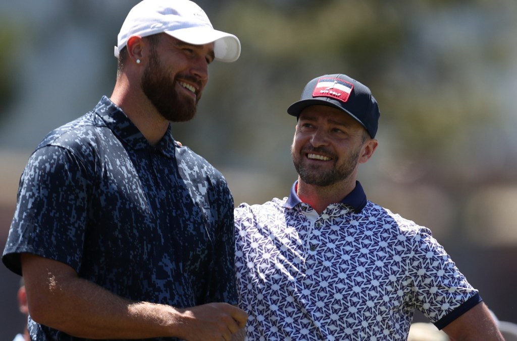 On Sunday (April 27), the 44-year-old pop superstar shared a festive behind-the-scenes video on Instagram from the Wynn Golf Club in Las Vegas, featuring himself with Travis and Jason Kelce, retired swimmer Michael Phelps, former NBA star Blake Griffin, and other celebrity athletes.